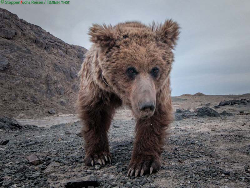 Der Mazaalai, der nur noch mit wenigen Dutzend Individuen in freier Wildbahn existiert, lebt dort, wo man eigentlich keine Bären vermuten würde: inmitten einer unwirtlichen, baumlosen Wüstenregion, zwischen schroffen Ausläufern des Altai-Gebirges und der unendlichen Weite der Gobi. Sein Lebensraum ist streng geschützt, doch wir bewegen uns respektvoll und mit Genehmigung in dieser besonderen Zone – stets achtsam, leise, demütig gegenüber der Natur.