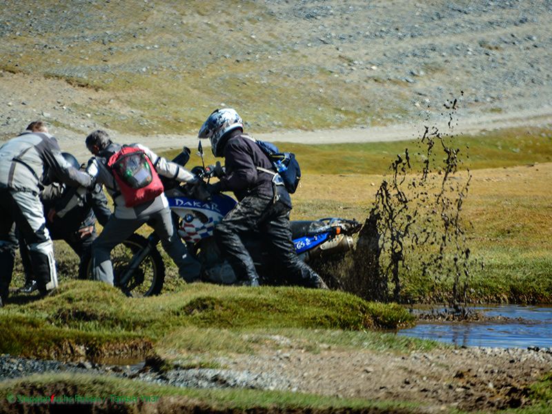 Nach einem stärkenden Frühstück übernimmst Du Dein Motorrad und passt es genau an Deine Bedürfnisse an. Schon dieser Moment ist aufregend, denn jetzt wird aus der Theorie Praxis: Ab sofort bist Du selbst Teil der Expedition, die Dich durch eine der letzten großen Wildnisse der Erde führen wird. Der erste Blick über den Lenker hinaus in die mongolische Landschaft weckt Vorfreude auf die kommenden Kilometer.